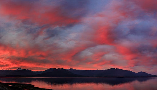 USA-Washington State-Seabeck Panoramic sunset on Hood Canal White Modern Wood Framed Art Print with Double Matting by Jaynes Gallery