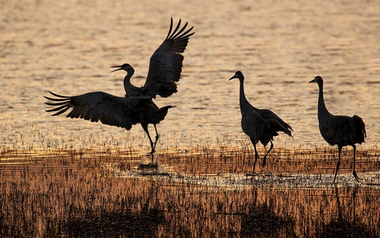 Sandhill crane silhouetted-Bosque del Apache National Wildlife Refuge-New Mexico White Modern Wood Framed Art Print with Double Matting by Pryor, Maresa