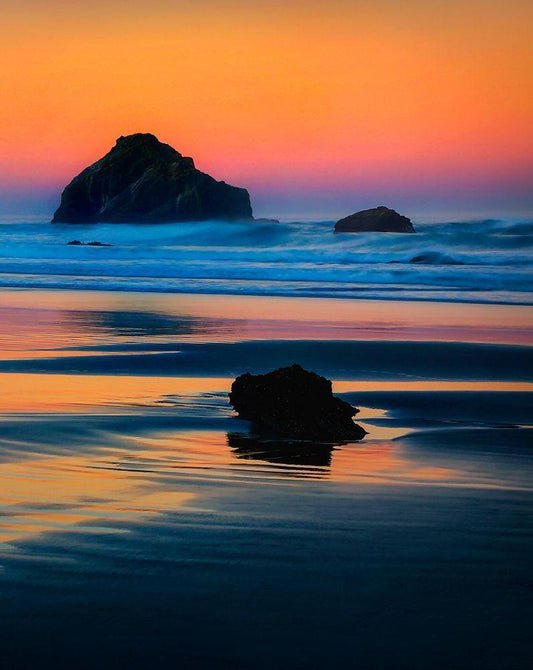 Oregon-Bandon Beach Wizards Hat formation at sunset White Modern Wood Framed Art Print with Double Matting by Jaynes Gallery