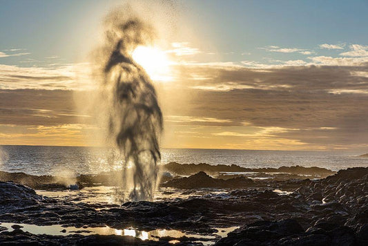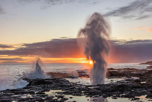 The Spouting Horn at sunset near Poipu in Kauai-Hawaii-USA White Modern Wood Framed Art Print with Double Matting by Haney, Chuck