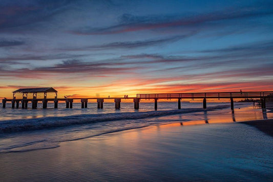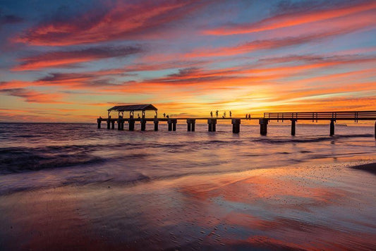 Vivid sunrise clouds silhouette Waimea Pier in Kauai-Hawaii-USA White Modern Wood Framed Art Print with Double Matting by Haney, Chuck