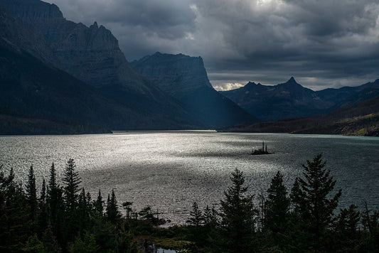 USA-Montana-Glacier National Park Fall storm above St Mary Lake White Modern Wood Framed Art Print with Double Matting by Jaynes Gallery