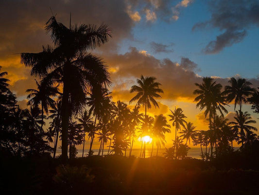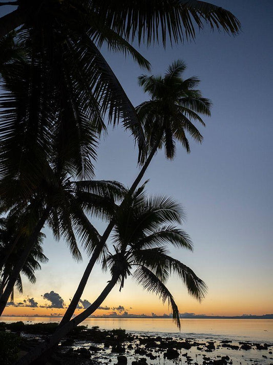 Fiji-Taveuni Island Beach sunset with palm trees White Modern Wood Framed Art Print with Double Matting by Merrill Images