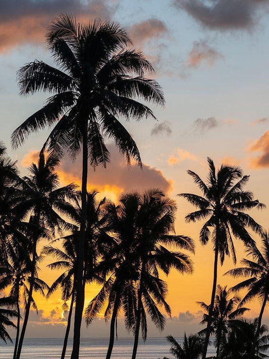 Fiji-Vanua Levu Palm fronds silhouetted in sunset over the ocean White Modern Wood Framed Art Print with Double Matting by Merrill Images