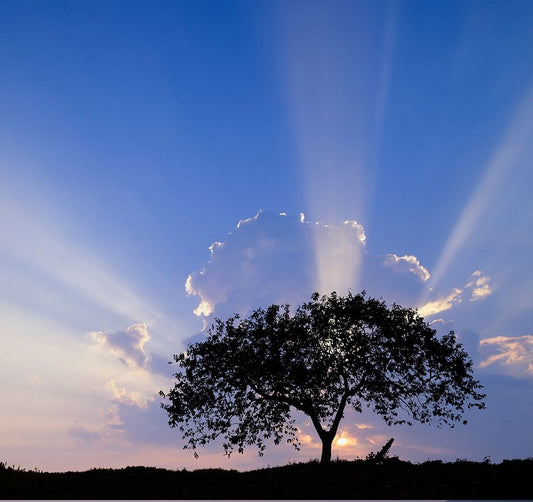 Single tree silhouetted at sunrise-Costa Rica White Modern Wood Framed Art Print with Double Matting by Jones, Adam