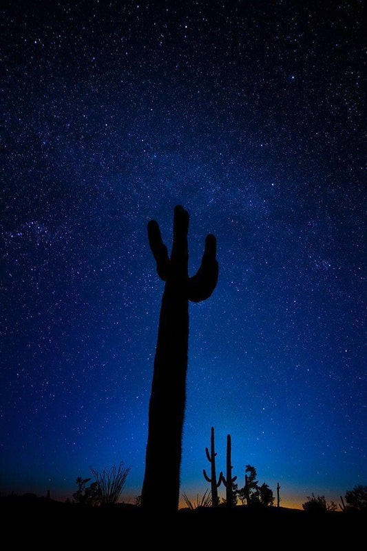 A giant saguaro cactus silhouettes in the clear Arizona evening White Modern Wood Framed Art Print with Double Matting by SMO