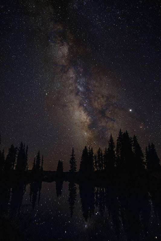 Colorado-Gunnison National Forest Milky Way above forest and lake White Modern Wood Framed Art Print with Double Matting by Jaynes Gallery