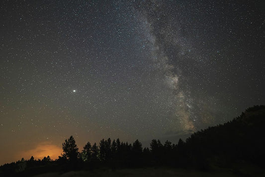 USA-Colorado-Eleven Mile Canyon The Milky Way galaxy and forest silhouette at night White Modern Wood Framed Art Print with Double Matting by Jaynes Gallery