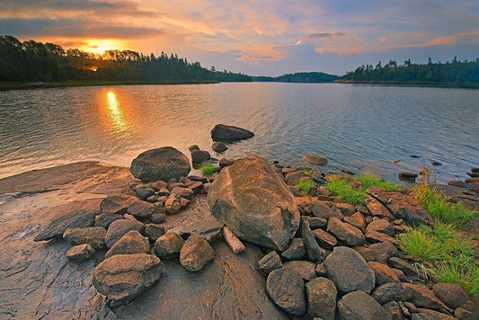 Canada-Ontario-Kenora Middle Lake at sunrise White Modern Wood Framed Art Print with Double Matting by Jaynes Gallery