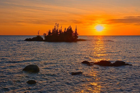Canada-Ontario-Lake Superior Provincial Park Islands in Lake Superior at sunset White Modern Wood Framed Art Print with Double Matting by Jaynes Gallery