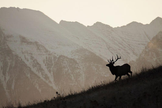 Bull Elk-Sunset Silhouette White Modern Wood Framed Art Print with Double Matting by Archer, Ken