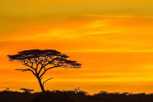 Tree silhouetted at sunset on the vast plains of Serengeti National Park-Tanzania-Africa White Modern Wood Framed Art Print with Double Matting by Jones, Adam