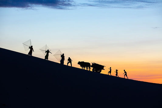 Vietnam-Nam Cuong dunes at Nha Trang-Cham People on their way to work White Modern Wood Framed Art Print with Double Matting by Norring, Tom