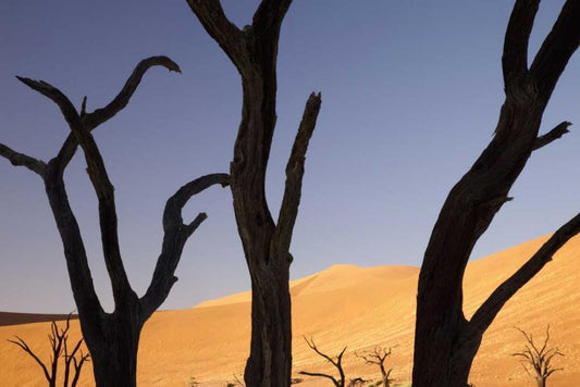 Namibia, Sossusvlei Dead trees with sand dune White Modern Wood Framed Art Print with Double Matting by Kaveney, Wendy