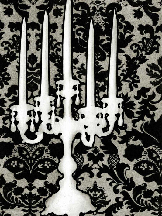 Small Patterned Candelabra II White Modern Wood Framed Art Print with Double Matting by Harper, Ethan