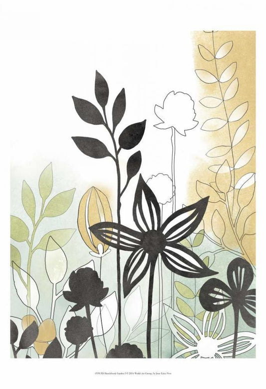 Sketchbook Garden I White Modern Wood Framed Art Print with Double Matting by Vess, June Erica