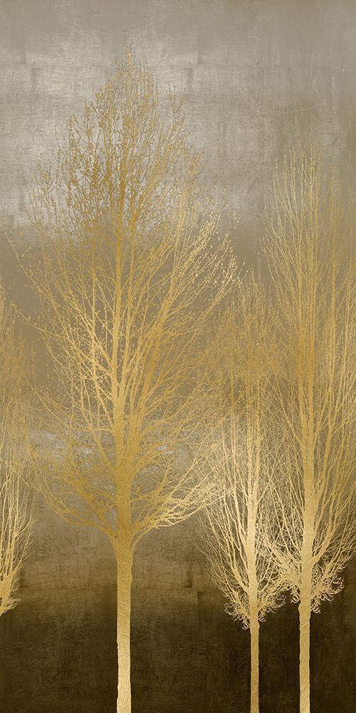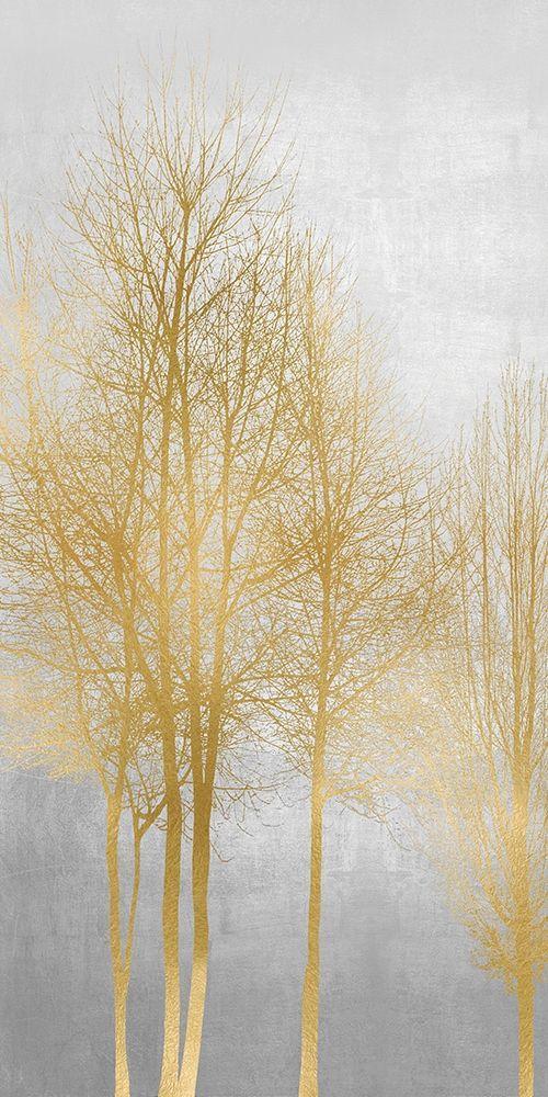 Gold Trees on Gray Panel I White Modern Wood Framed Art Print with Double Matting by Bennett, Kate