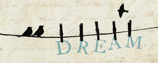 Birds on a Wire - Dream White Modern Wood Framed Art Print with Double Matting by Pelletier, Alain