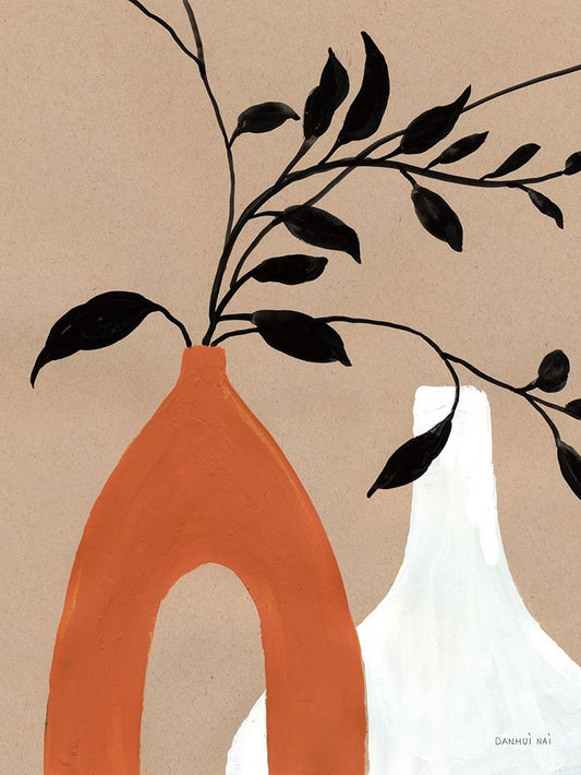 Slender Stems II White Modern Wood Framed Art Print with Double Matting by Nai, Danhui