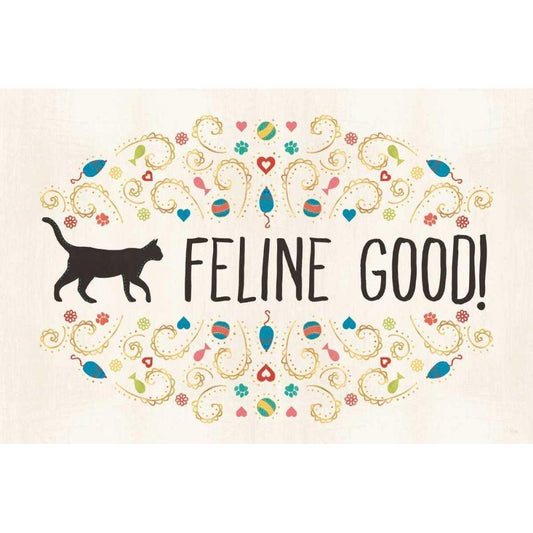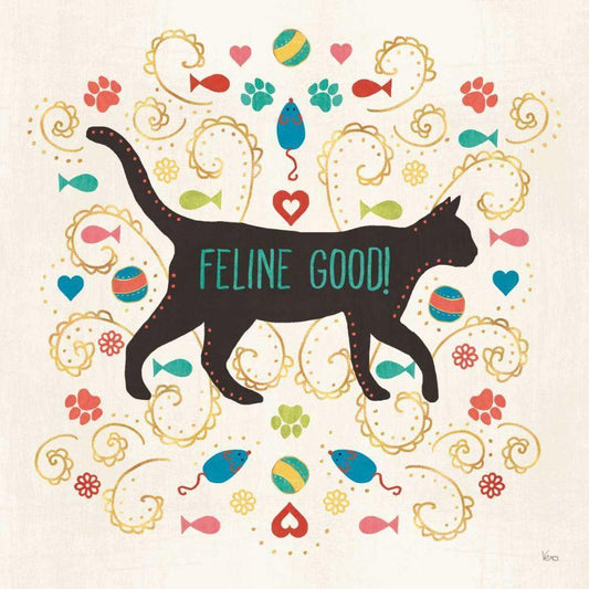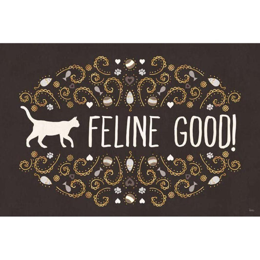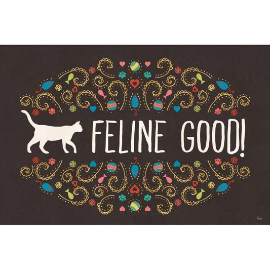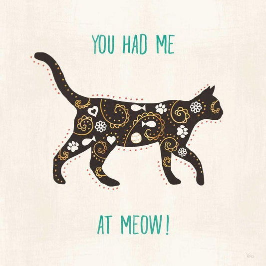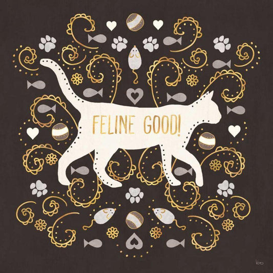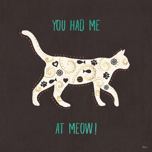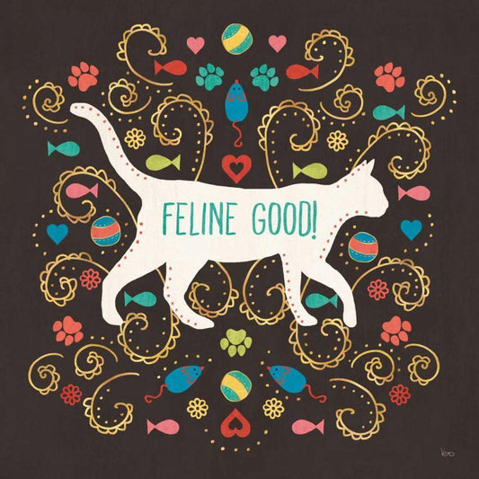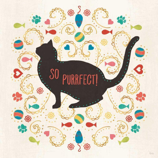 Otomi Cats III Dark Black Modern Wood Framed Art Print by Charron, Veronique