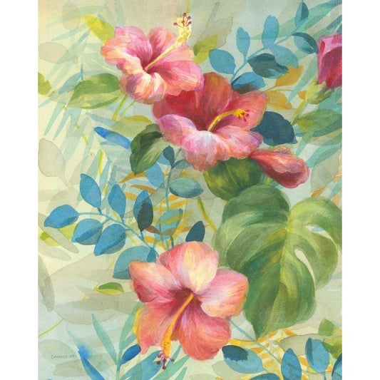 Hibiscus Garden II Black Modern Wood Framed Art Print by Nai, Danhui