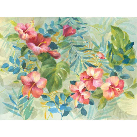 Hibiscus Garden Black Modern Wood Framed Art Print by Nai, Danhui