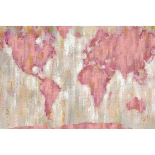 Blushing World Map v2 Crop Black Modern Wood Framed Art Print by Vassileva, Silvia