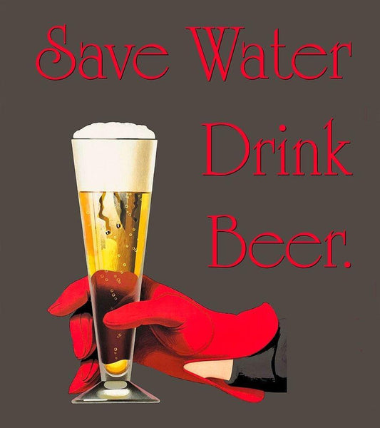 Save Water Drink Beer White Modern Wood Framed Art Print with Double Matting by Lavoie, Tina
