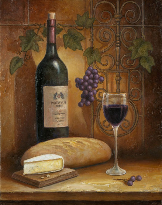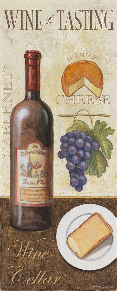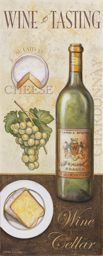 Wine And Cheese A White Modern Wood Framed Art Print with Double Matting by Zaccheo, John