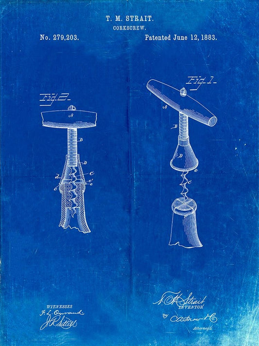 PP235-Faded Blueprint Corkscrew 1883 Patent Poster White Modern Wood Framed Art Print with Double Matting by Borders, Cole