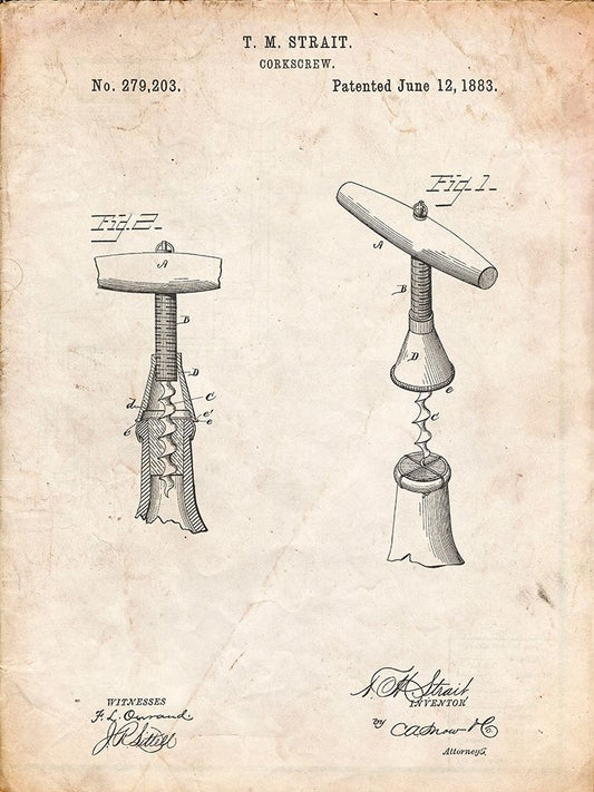 PP235-Vintage Parchment Corkscrew 1883 Patent Poster White Modern Wood Framed Art Print with Double Matting by Borders, Cole
