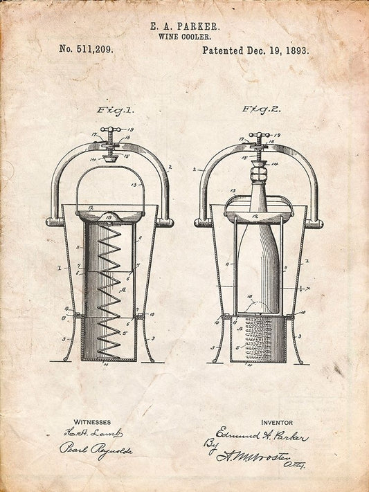 PP1138-Vintage Parchment Wine Cooler 1893 Patent Poster White Modern Wood Framed Art Print with Double Matting by Borders, Cole