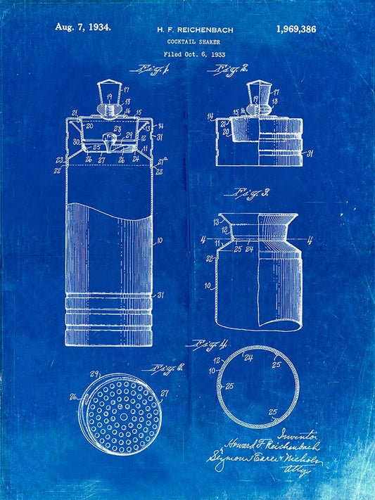PP204- Faded Blueprint Cocktail Shaker Patent Poster White Modern Wood Framed Art Print with Double Matting by Borders, Cole