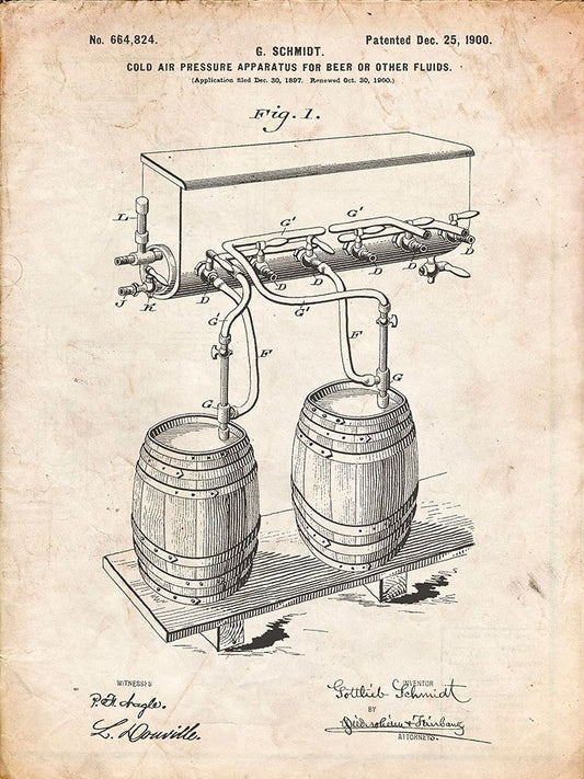 PP729-Vintage Parchment Beer Keg Cold Air Pressure Tap Poster White Modern Wood Framed Art Print with Double Matting by Borders, Cole