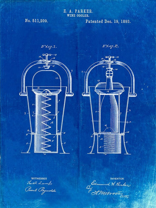 PP1138-Faded Blueprint Wine Cooler 1893 Patent Poster White Modern Wood Framed Art Print with Double Matting by Borders, Cole