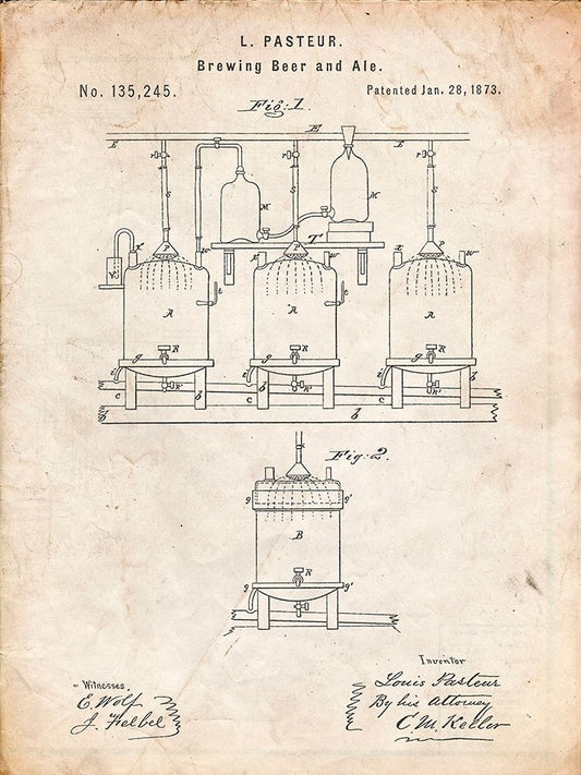 PP728-Faded Blueprint Beer Brewing Science 1893 Patent Poster White Modern Wood Framed Art Print with Double Matting by Borders, Cole