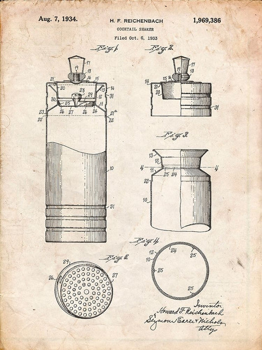 PP204- Vintage Parchment Cocktail Shaker Patent Poster White Modern Wood Framed Art Print with Double Matting by Borders, Cole
