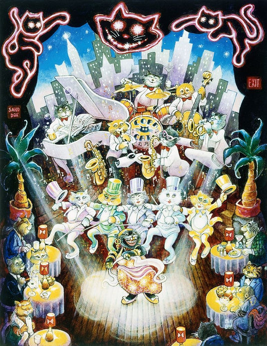 Holy Cats Stomp Them Grapes (Pc) White Modern Wood Framed Art Print with Double Matting by Bell, Bill