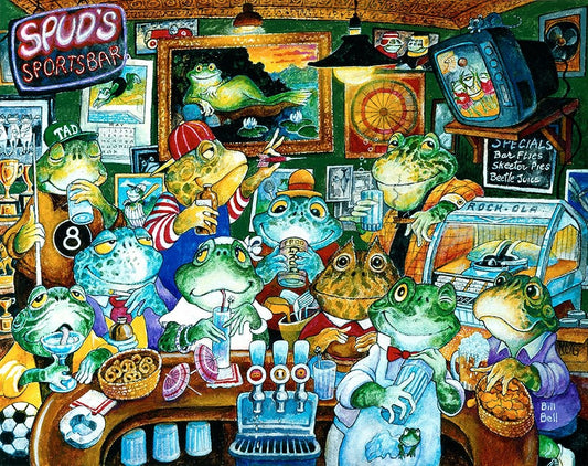 Spuds Sportsbar White Modern Wood Framed Art Print with Double Matting by Bell, Bill