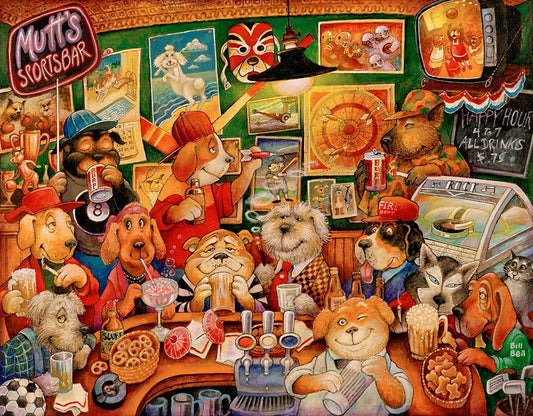Mutt’s Sportsbar White Modern Wood Framed Art Print with Double Matting by Bell, Bill