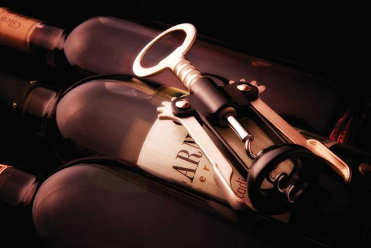 Wine and Corkscrew White Modern Wood Framed Art Print with Double Matting by McNemar, C. Thomas