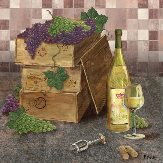 At the Vineyard Sq I White Modern Wood Framed Art Print with Double Matting by Brent, Paul
