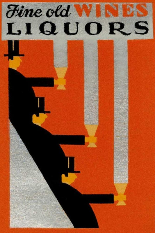 Fine Old Wines Liquors Black Ornate Wood Framed Art Print with Double Matting by Vintage Booze Labels