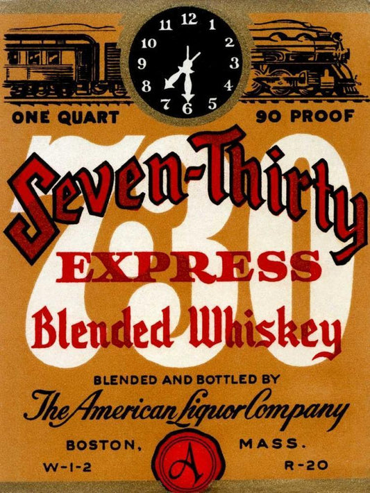 Seven-Thirty Express Blended Whiskey Black Ornate Wood Framed Art Print with Double Matting by Vintage Booze Labels