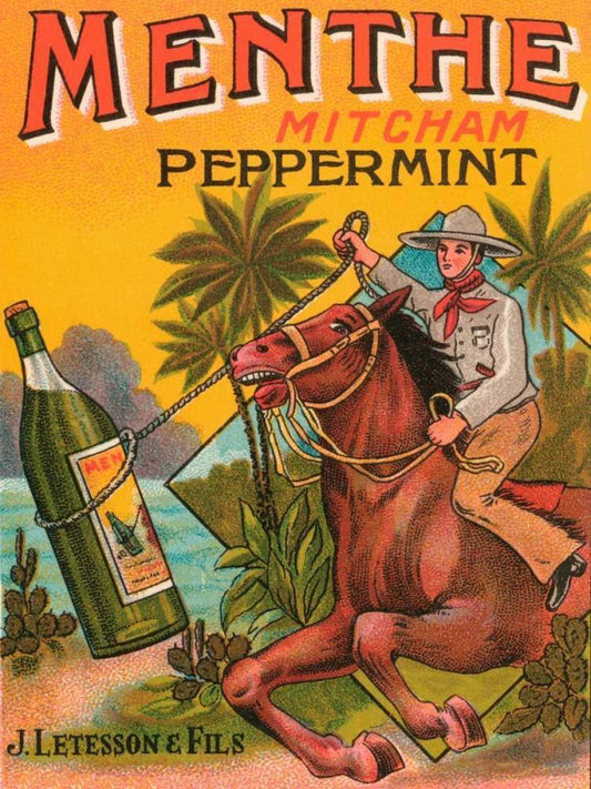 Menthe Peppermint Black Ornate Wood Framed Art Print with Double Matting by Vintage Booze Labels