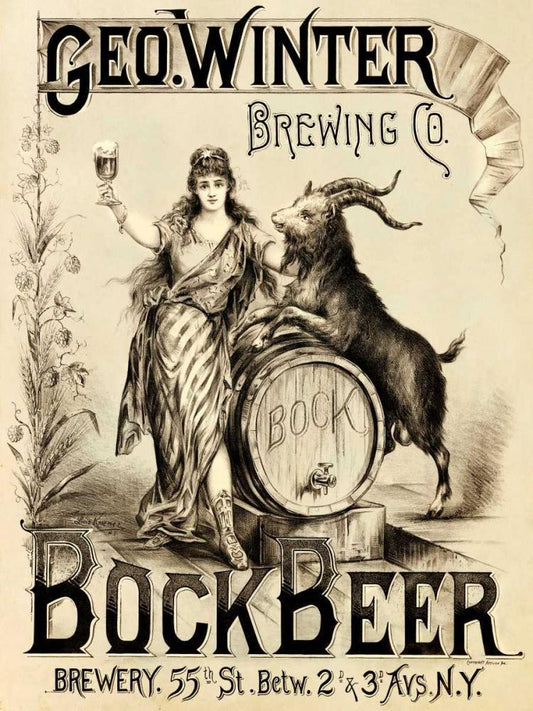 Bock Beer Black Ornate Wood Framed Art Print with Double Matting by Vintage Booze Labels