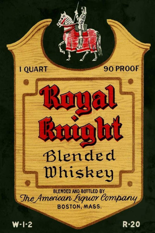Royal Knight Blended Whiskey Black Ornate Wood Framed Art Print with Double Matting by Vintage Booze Labels