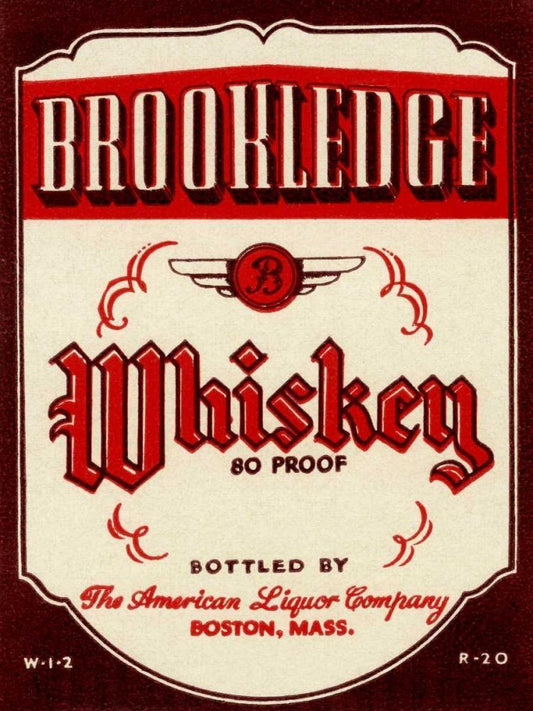 Brookledge Whiskey Black Ornate Wood Framed Art Print with Double Matting by Vintage Booze Labels