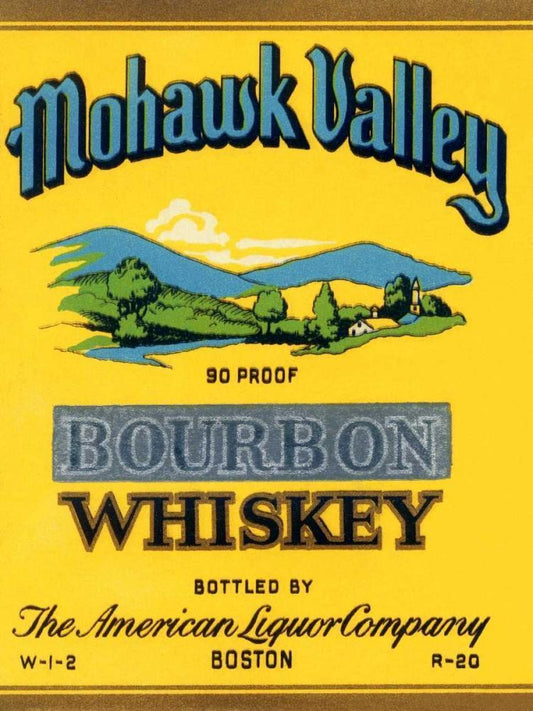 Mohawk Valley Bourbon Whiskey Black Ornate Wood Framed Art Print with Double Matting by Vintage Booze Labels