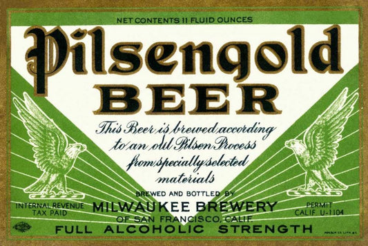 Pilsengold Beer Black Ornate Wood Framed Art Print with Double Matting by Vintage Booze Labels